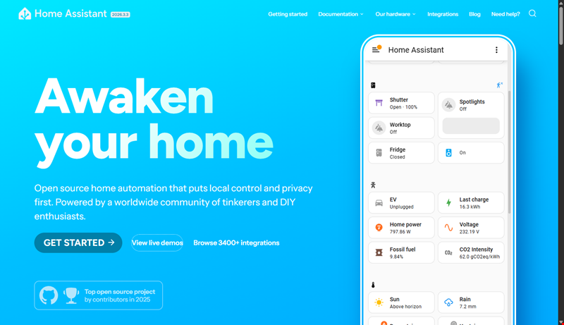 - Kostenlose, quelloffene Hausautomations-Software, geschrieben in Python, die als zentrale Steuerung für Smart-Home-Geräte und -Dienste dient.